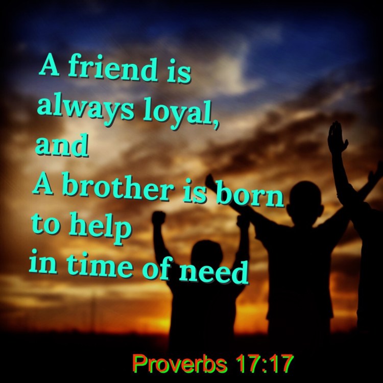 Posted byC. AyelotanPosted inAttitude, Book of Proverbs, Christian BrotherhoodTags:Christian Brotherhood, friendship, Proverbs 17:17
